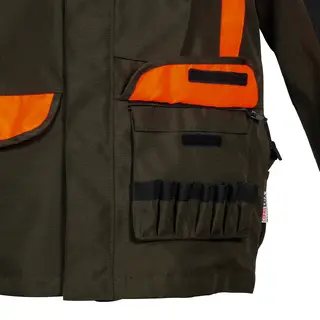 Descrizione:1 cartuccera per fucile, 1 cartuccera per carabina, 2 ampie tasche anteriori con zip, 2 tasche interne con zip, 2 tasche sul fondo con zip e con cartuccera interna estraibile e removibile, ampio tascone posteriore impermeabile chiuso con zip, antispino e antirovo, apertura centrale chiusa con zip e snap, apertura centrale con zip a doppio cursore, aperture regolabili per aerazione, cappuccio regolabile, staccabile e con inserti in gomma per una migliore visibilità, costruzione ergonomica delle maniche, cuciture termonastrate, capo impermeabile, D-Ring, doppia paramontura frontale, parte posteriore in tessuto elasticizzato per massima libertà di movimento, polsini regolabili con velcro, tasca sul petto porta radio, tessuto antiabrasione nei punti di maggior sollecitazione